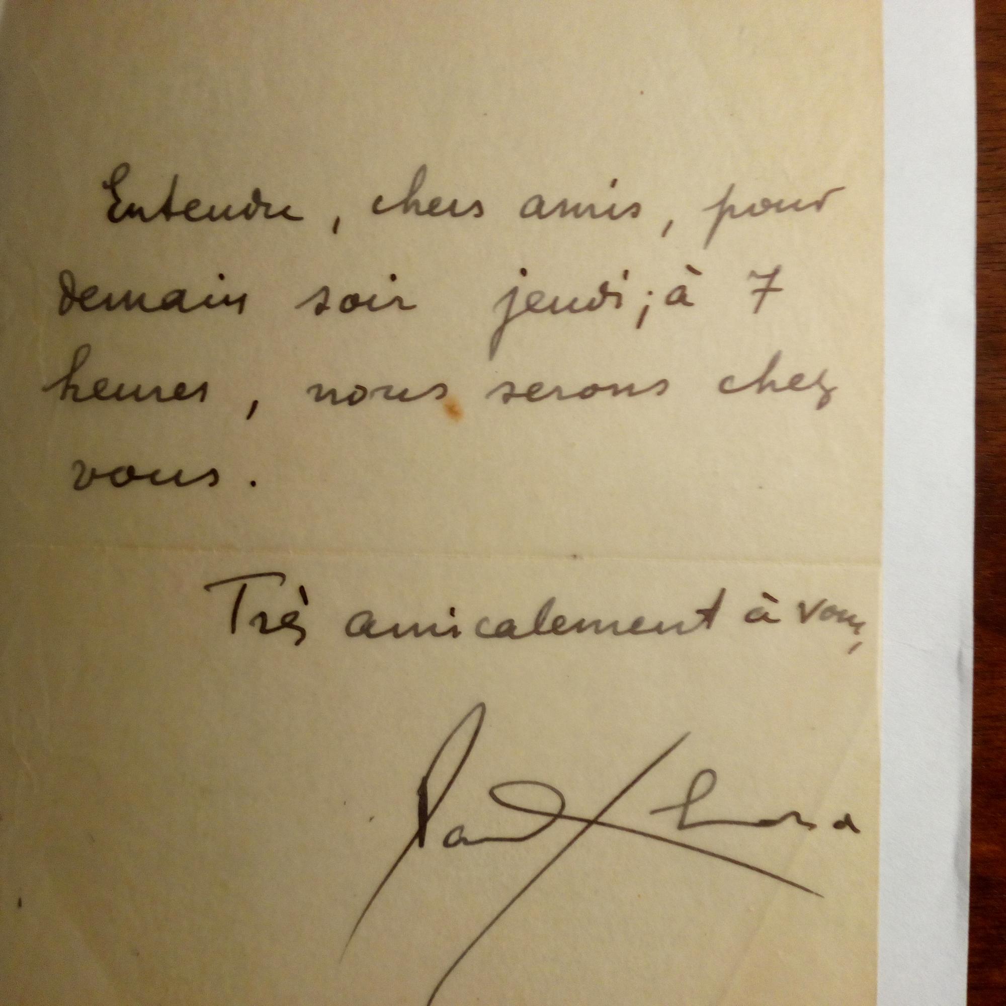 1895-1952, frz. Dichter des Surrealismus, Freund von Max Ernst - E. Einladung m. U., 1 S. 8°, Durchschr.papier, kl. Fleck.