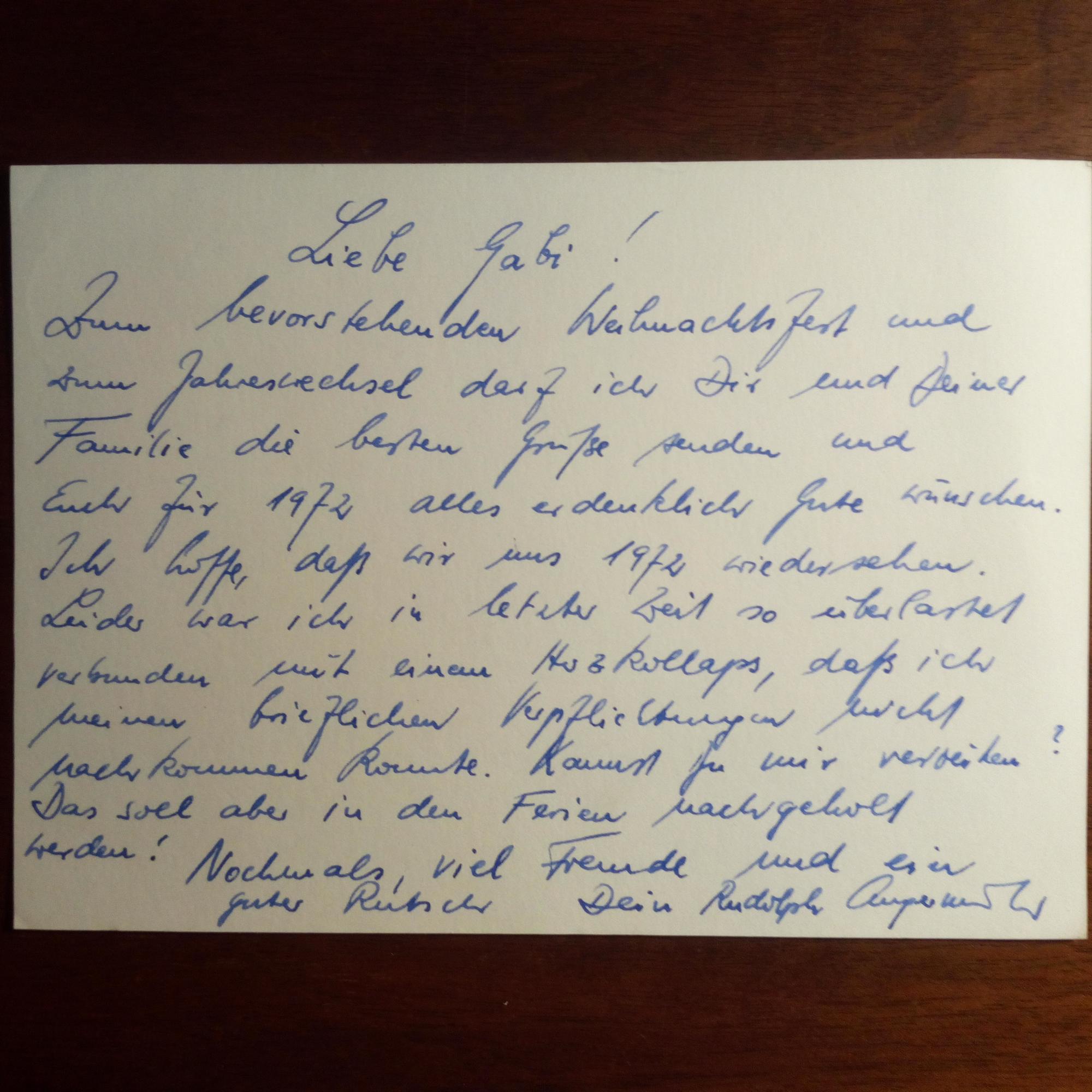 1940-2021, österr. Musik-Historiker (bes. Mozart) - Karte mit mont. Zeitungsmeldung über die Verleihung des Mozart-Preises an ihn (1971). Auf Rückseite persönliche Zeilen an "Gabi": Weihnachts- und Neujahrs-Grüße, über seinen "Herzkollaps" u.a.