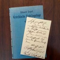 1852-1938, Literaturwiss. - E. postal. Postkarte (Berlin 29.11.1912) mit U. An den Schauspieler und Oberspielleiter des Landes-theaters in Karlsruhe Felix Baumbach (1876-1966): ...in der demnächst zu druckenden 12. Auflage meiner Dt. Stilkunst ist der Irrtum schon verbessert... Beiliegt sein Buch "Griechische Frühlingstage" (Dresden 1927).