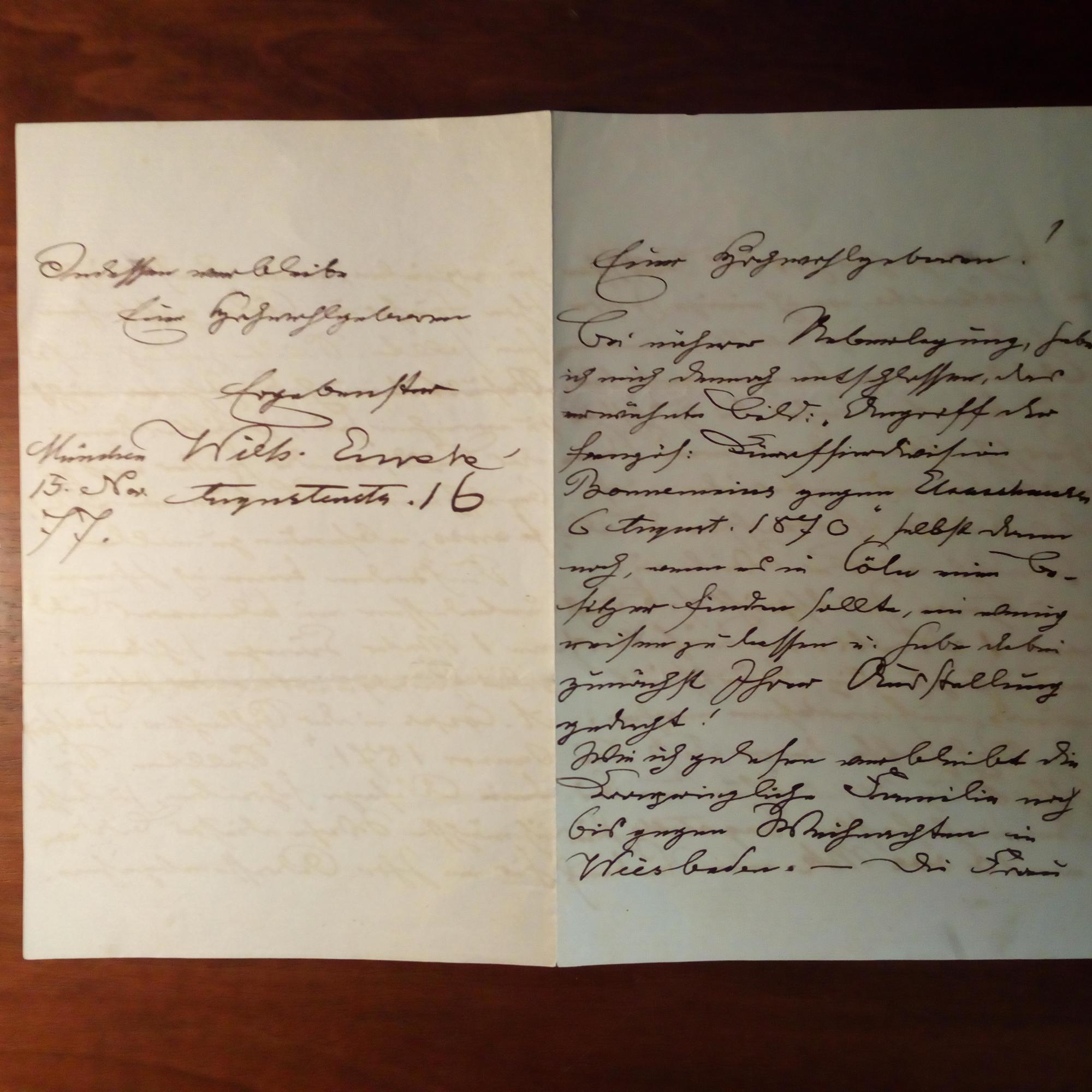 1830-1905, Historien-Maler - E. Brief mit U., München 15.11.1877, 3 ½ S. 8°. An einen Galeristen in Köln mit Details zu Ausstellung und Verkauf versch. seiner Bilder.