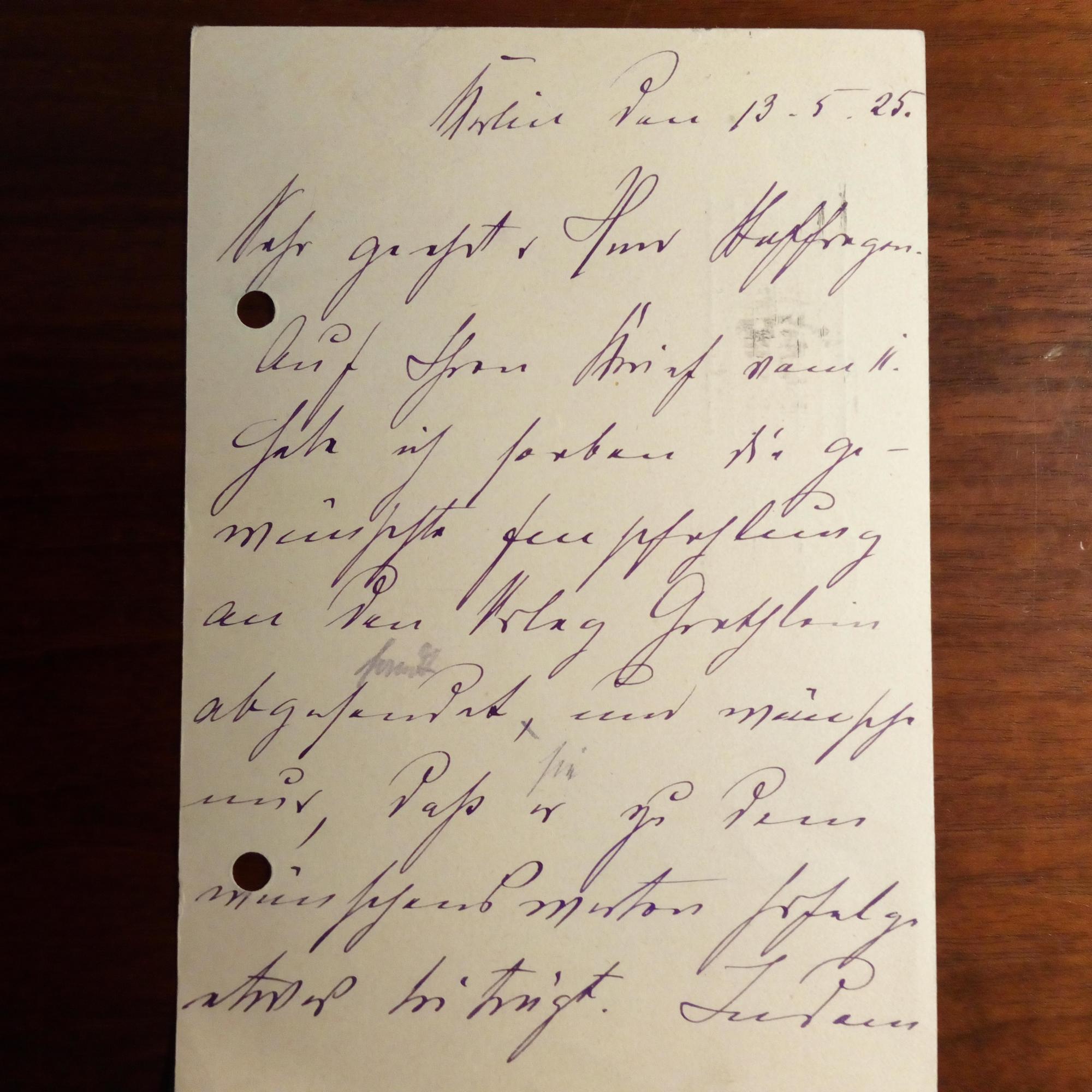 1866-1931, Schriftsteller - E. postal. Postkarte (Marke abgelöst) mit U., Berlin 13.5.1925, gel. An den Schriftst. Otto Stoffregen (1896-60er Jahre) in Potsdam: ...habe soeben die gewünschte Empfehlung an den Verlag Gretheim abgesendet... Beiliegt Papierstreifen mit U. (Bleistift), darauf weitere U. von dem Schriftst. Hermann Sudermann (1857-1928).