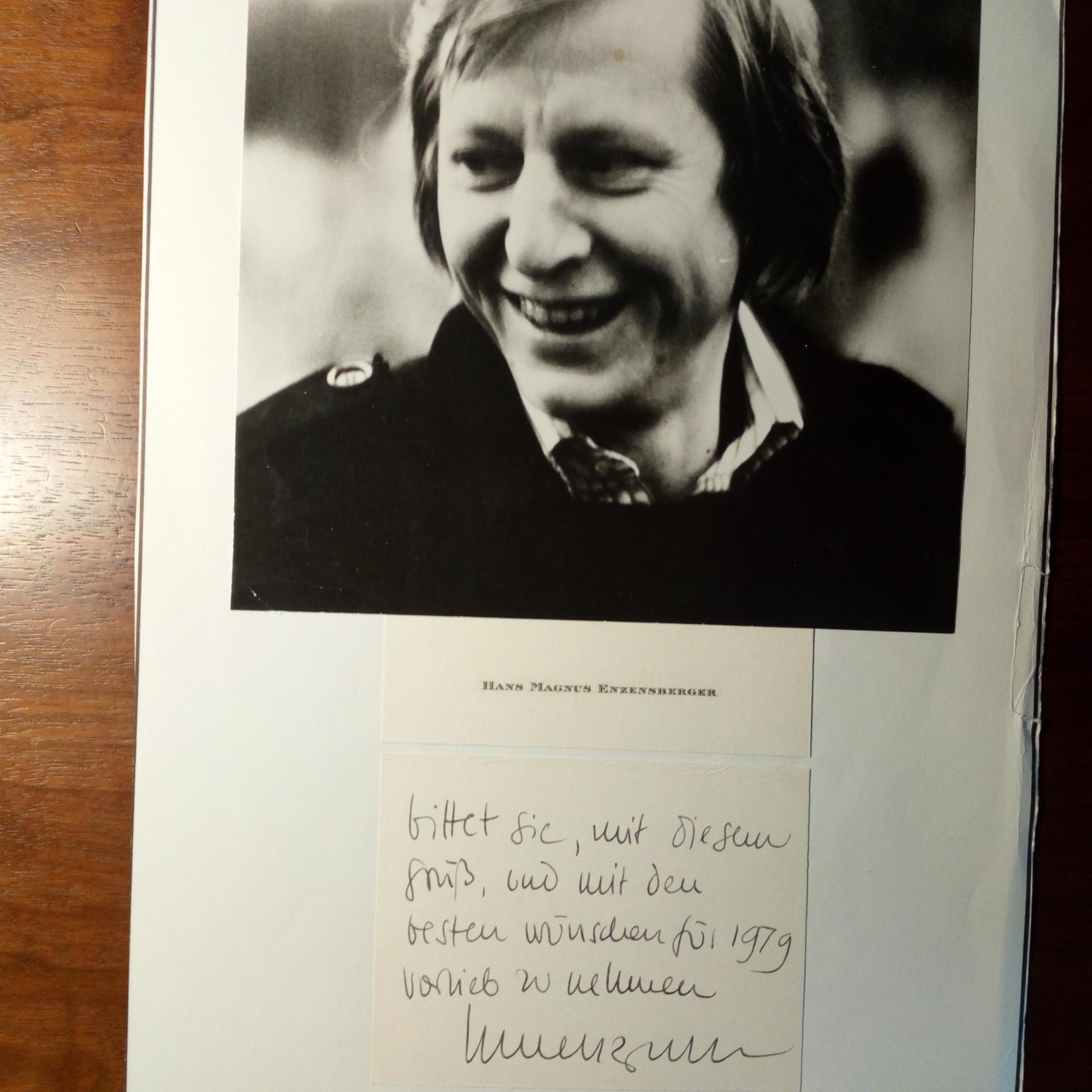 1929-2022, Schriftsteller - Karte mit e. Neujahrsgrüßen 1979 und U., mont. auf 4° unter Pfo. (Fotografen-Labor-Abzug). Beiliegt Karte mit e. Zeilen und U. (lt. Notiz "Absage für Struga 1979"): ...Dieses Jahr nicht- wir wollen nicht übertreiben...