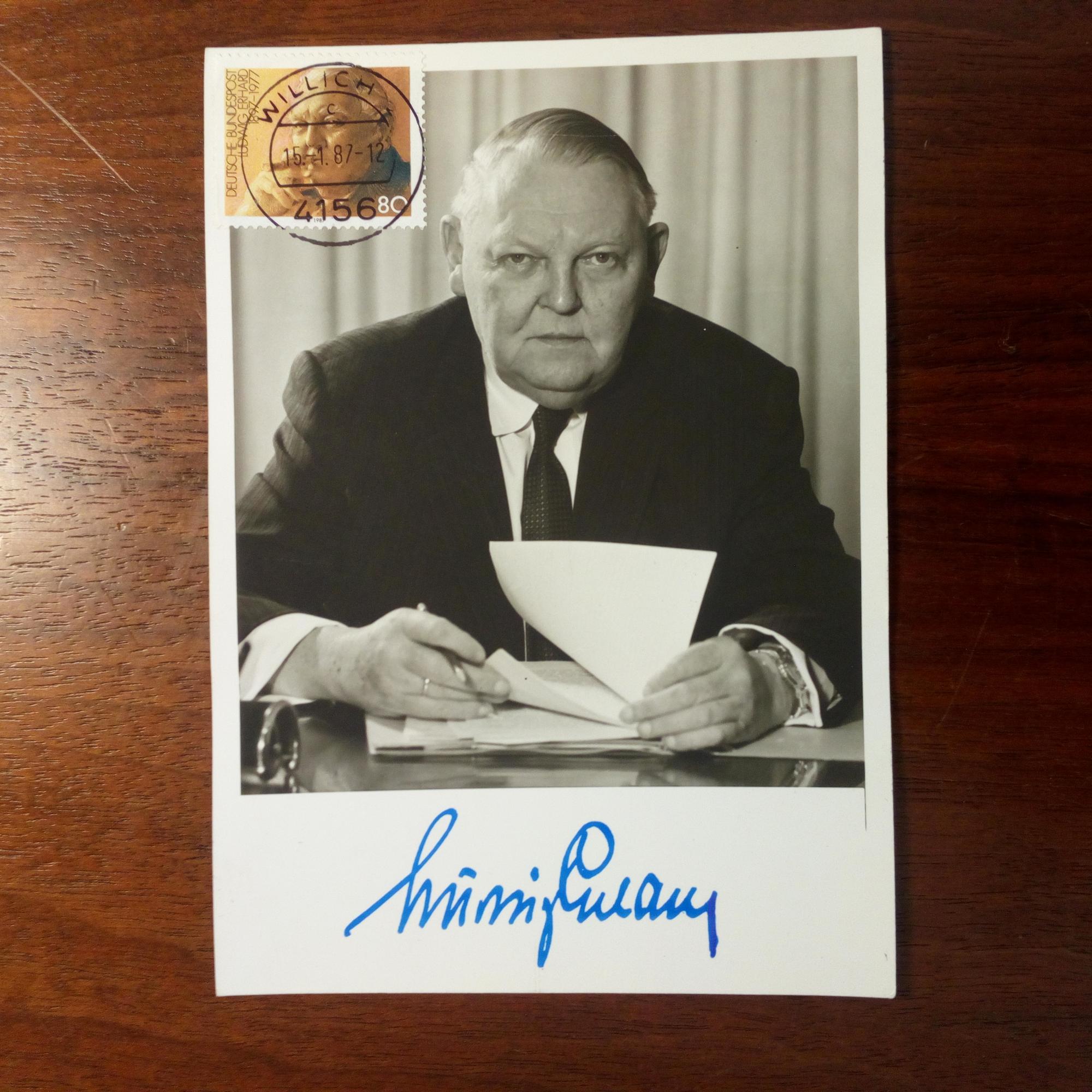 1897-1977, CDU-Politiker, Bundeskanzler - Pfo. m. U., m. postal. Umschlag (Bundestag 7.9.1976). Dazu Ded.karte.