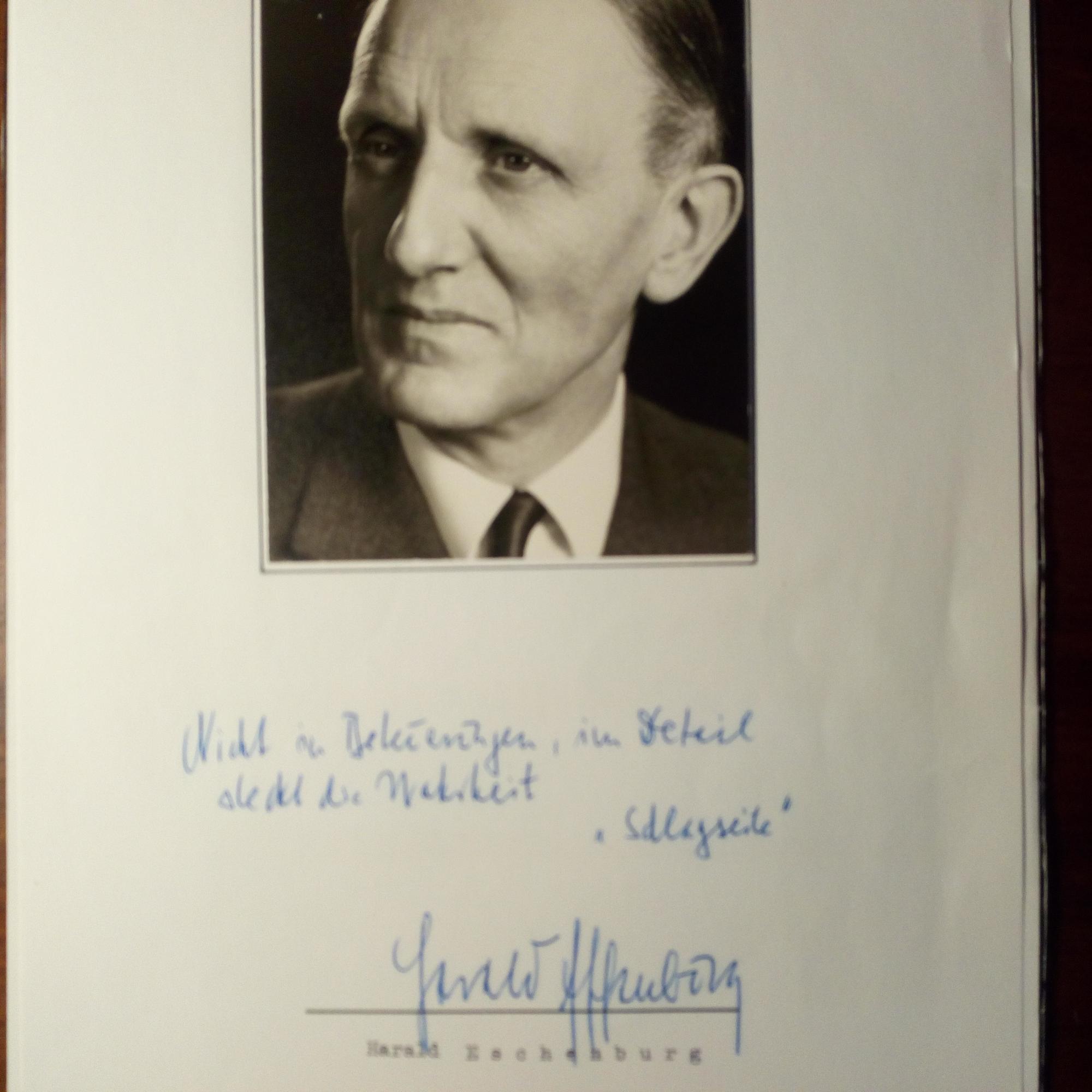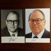 1925-2000, FDP-Politiker, Landwirtschaftsminister - Pfo. (kl. Alterssp.) m. U. Beiliegt Farb-Pfo. m. U. neueren Datums.