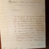 1786-1836, frz. Naturforscher und Publizist - E. Brief mit U., (Paris) 18.2.1825, 2 ½ S. 4°, e. Adr. an Schmideler in Leipzig. Br.kopf als Dir. des "Bulletin universel des Sciences et de l'Industrie" betr. eines "Tableau du mouvement de la population à Leipsick, en 1824" für die nächste Ausgabe. Beiliegt Mitt. in s. Namen.