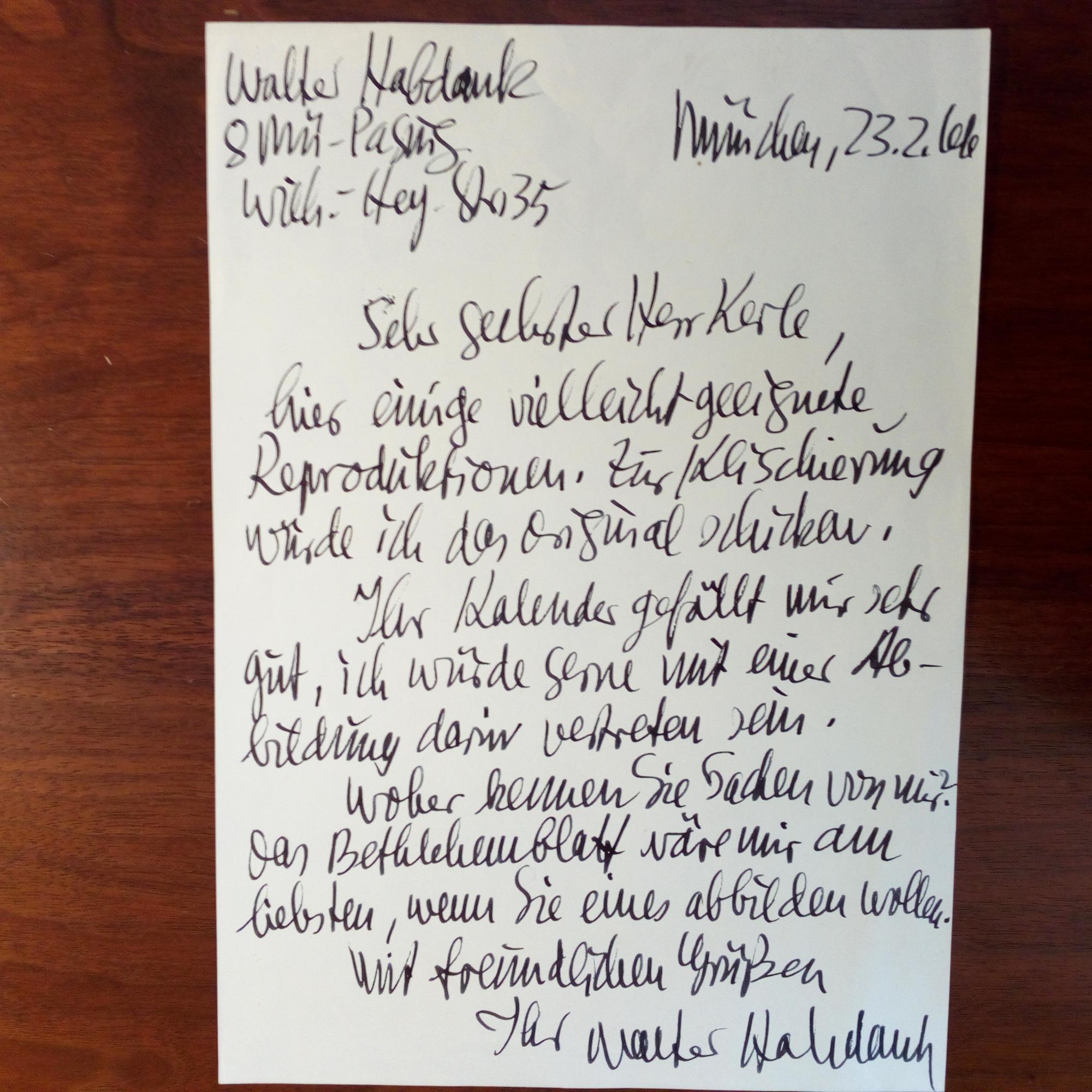 1930-2001, Maler und Graphiker - E. Br. m. U., München 23.2.1966, 1 S. 4°. An den Verleger Kerle betr. Bilderauswahl für einen Kalender: ...Das Bethlehembild wäre mir am liebsten...