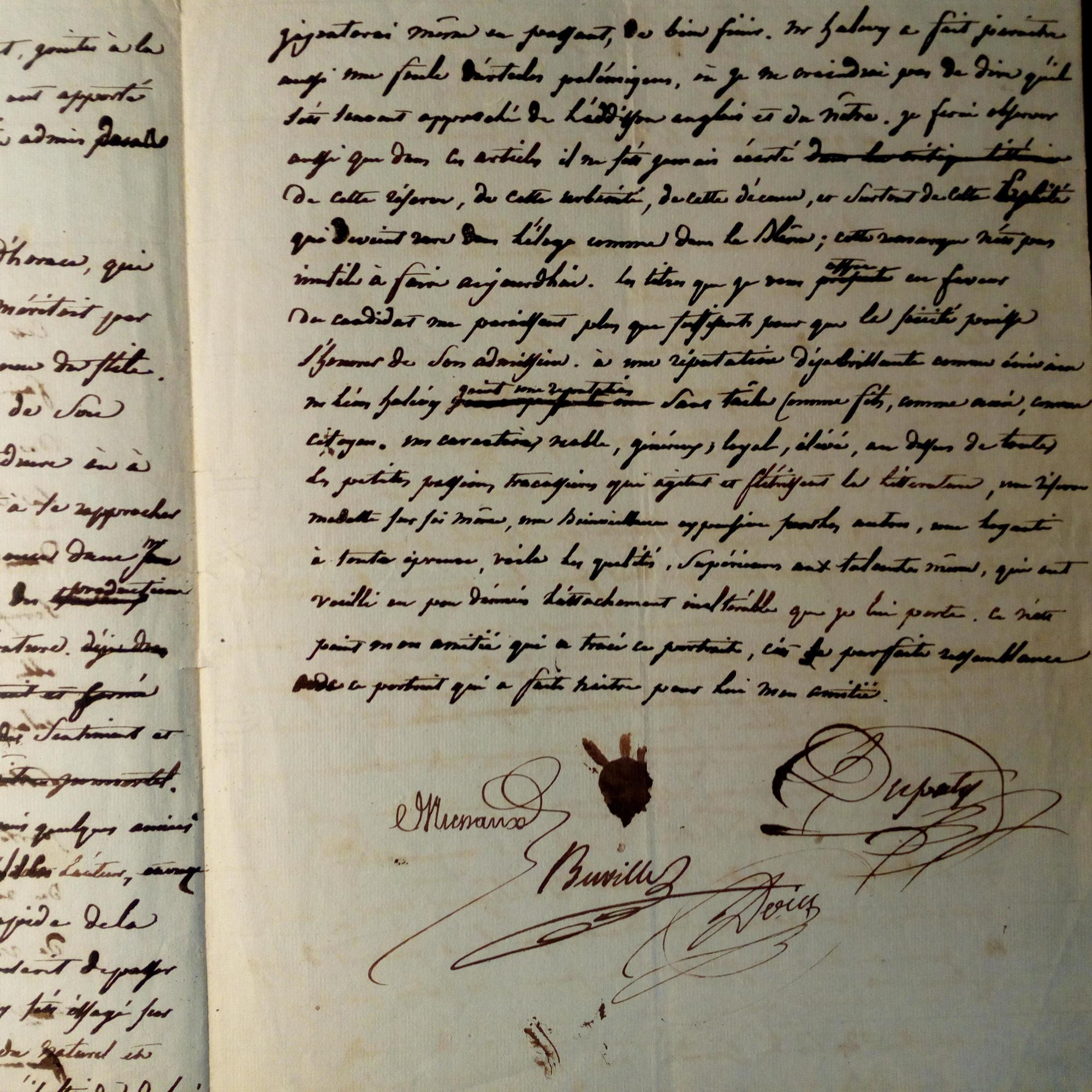 1802-83, frz. Schriftsteller, Bruder des Schriftst. Fromental H. - Brief mit den U. von Mussance, Dupraty, Buville und Droiet, ohne D., 3 S. kl. 4°, Tinte etw. durchgeschl. und kl. Gebr.spuren. Bitten ausführl. um seine Aufnahme in eine "Conféderation litteraire".