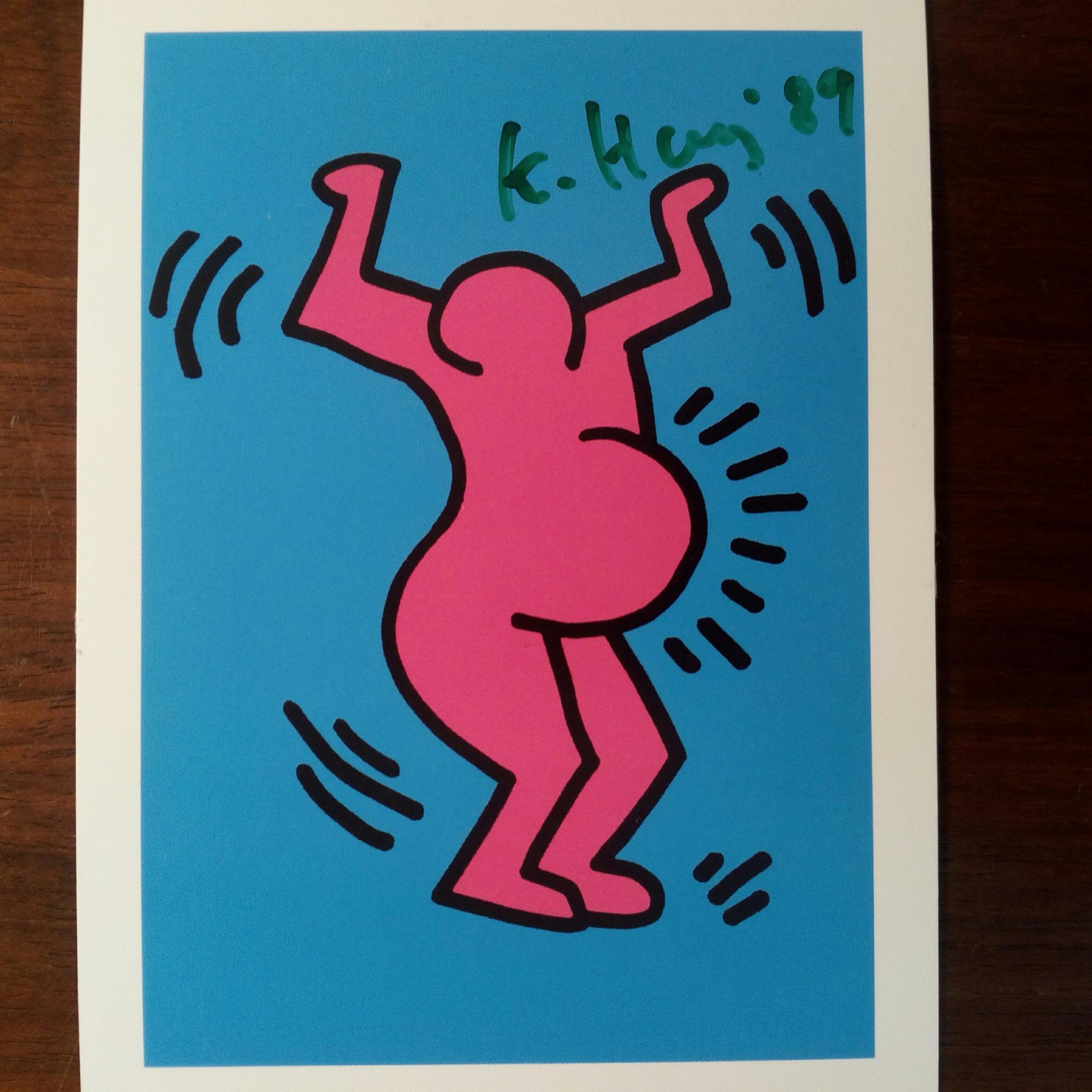 1958-90, US-Graffiti-Künstler - Kunst-Ansichtskarte (sein Bild "Birth") mit U. und Jahr 1989. Mont.spuren auf Rückseite.