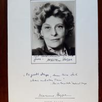 1911-2002, Schauspielerin - E. Zitat (aus "Die Frau von Kauenhofen" von Hartmut Lange) u. U. unter auf 4° mont. Pfo. m. e. Grüßen u. U., kl. Gebr.spuren. Beiliegt Pfo. m. U. aus späterer Zeit.