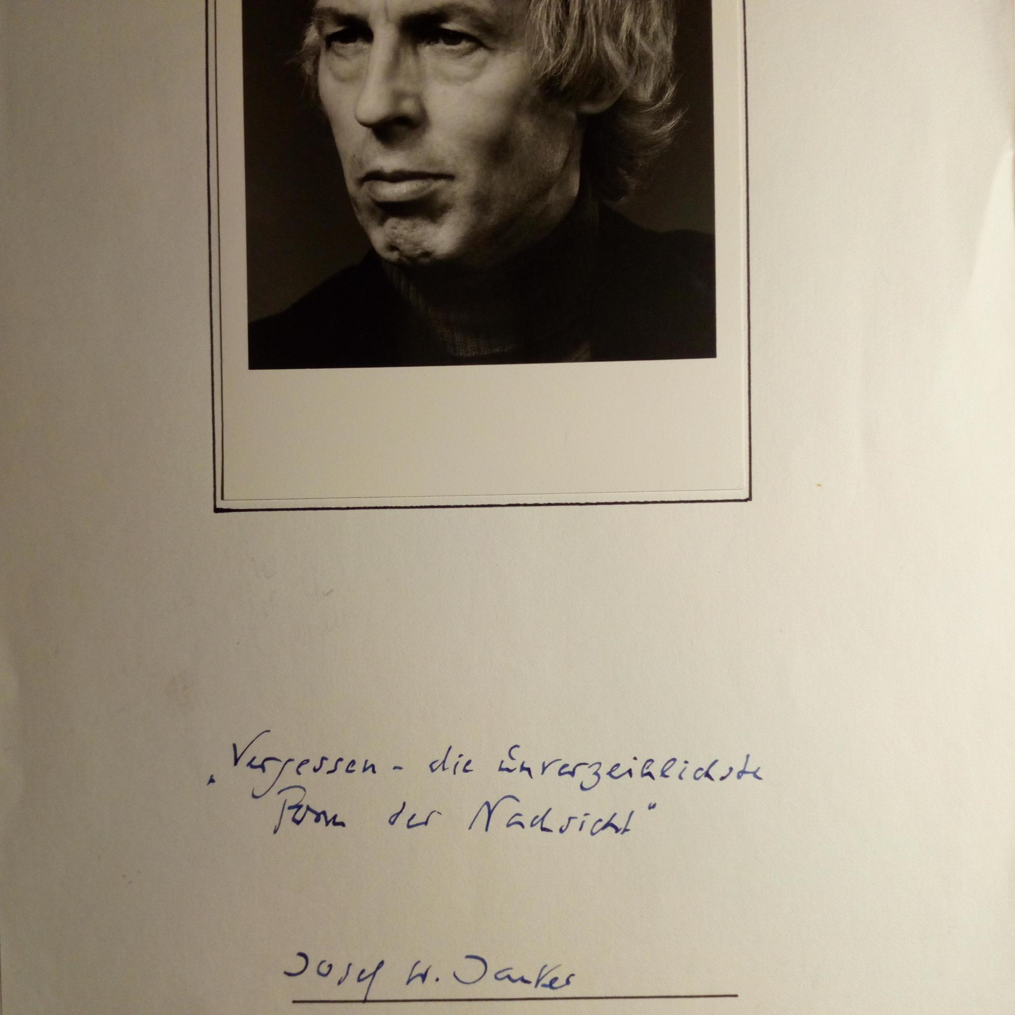 1929-2015, Schriftst. - E. Zitat (4 Z.) u. U. unter auf 4° mont. gr. Druck-Pfo. (aus einer Zeitschrift). "Es war aber ein Ende des Hungers abzusehen...". Mit e. Begleitbr. m. U., Düsseldorf 8.5.1979.