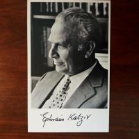 1916-2009, israel. Naturwiss. und Staatspräsident - Pfo. (um 1977) mit U. Beiliegt Karte mit hebr. Beschriftung und U.