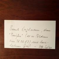 1931-2016, Germanist, Leiter des Fontane-Archivs in Potsdam - Visitenkarte (des Archivs). Auf Rückseite e. Widm. für den Schriftsteller Bernt Engelmann (1921-94) mit U., 18.3.1987.