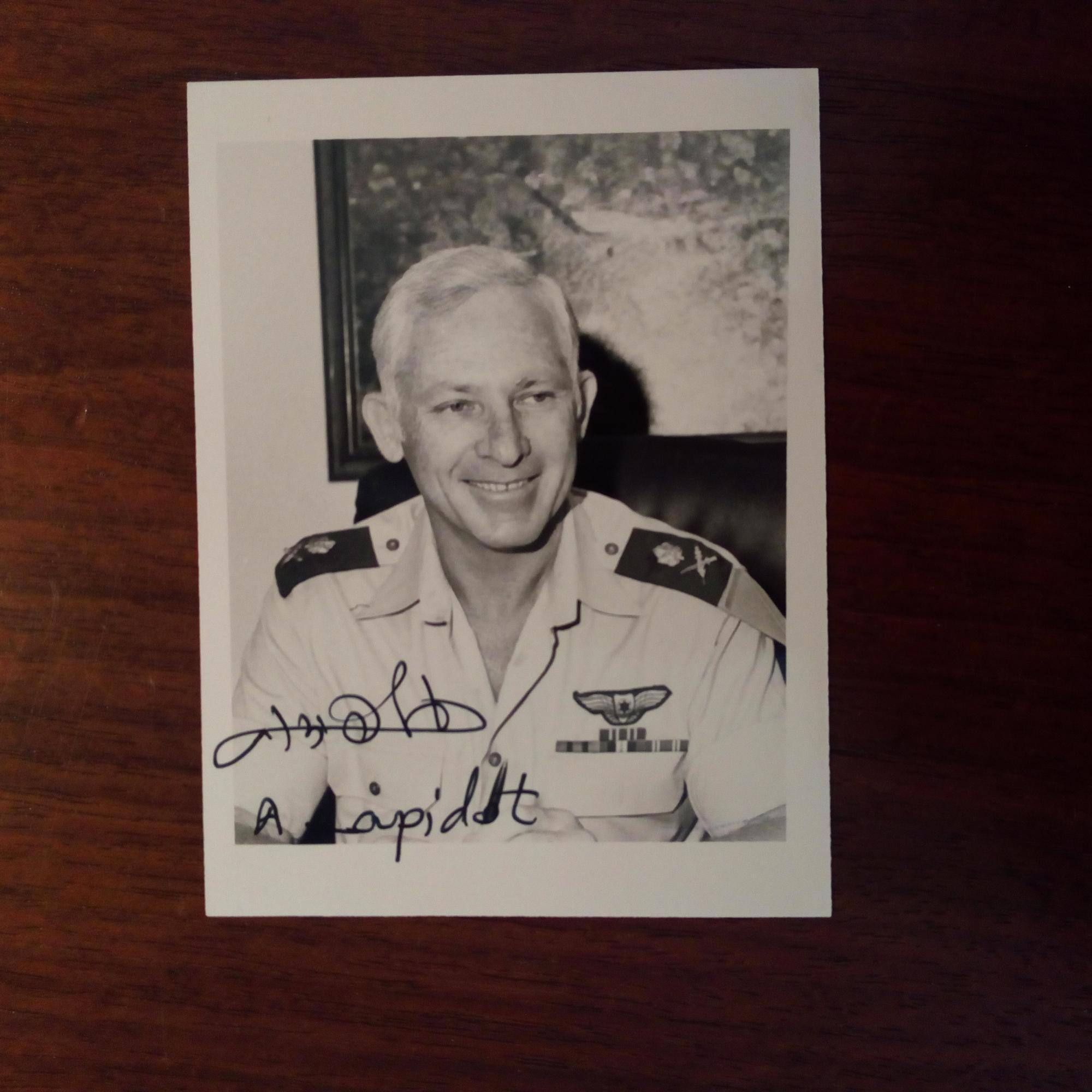 1934-2019, israel. Pilot, Kommandeur der Luftwaffe - Pfo. (Passfoto-Größe) mit 2 U. (in hebr. und latein. Schrift).
