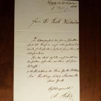 1827-1910, österr. Musikwiss. und Kritiker - E. Faltbr. m. U., (Wien) 13.2.1852, 2 S. gr.8°, kl. Schrift, e. Anschrift, Siegel. An den bei dem österr. Musikschriftst. Eduard Hanslick wohnenden Pianisten Jacques Émile Hock: ...Da Du so selten zu Hause anzutreffen bist, und, das Evangelium der Musik predigend, von Haus zu Haus, von Stunde zu Stunde ein unstetes Nomadenleben führst, so muss ich Dir brieflich eine Eröffnung machen... Muss aus finanziellen Gründen weitere Klavierstunden bei ihm absagen.