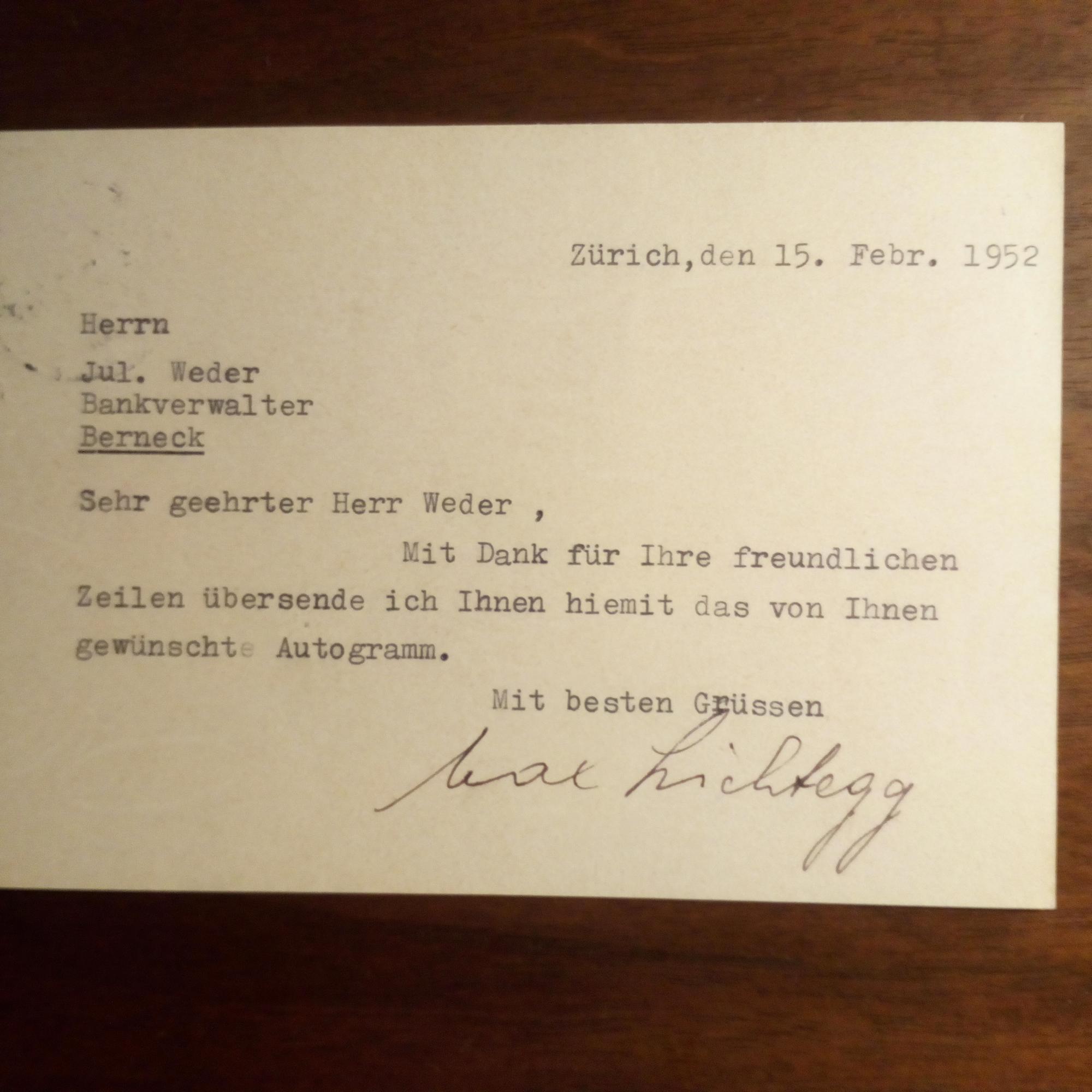 1910-92, poln. Tenor - Postal. Postkarte m. U., Zürich 15.2.1952. An einen Sammler. Dazu Annonce für einen voran-gegangenen Liederabend mit ihm (Zürich 13.2.)