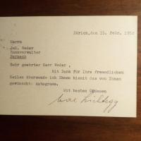 1876-1957, Maler - E. Briefkarte mit U., (München) 10.4.1944, 1 S., kl. Schrift, mit e. postal. Umschlag. An Kunsthändler Wilhelm Rosenkranz in Hannover. Muss die Anfrage für ein Bild ablehnen, da es das "einzige Bluemstilleben ist, das ich noch besitze...".