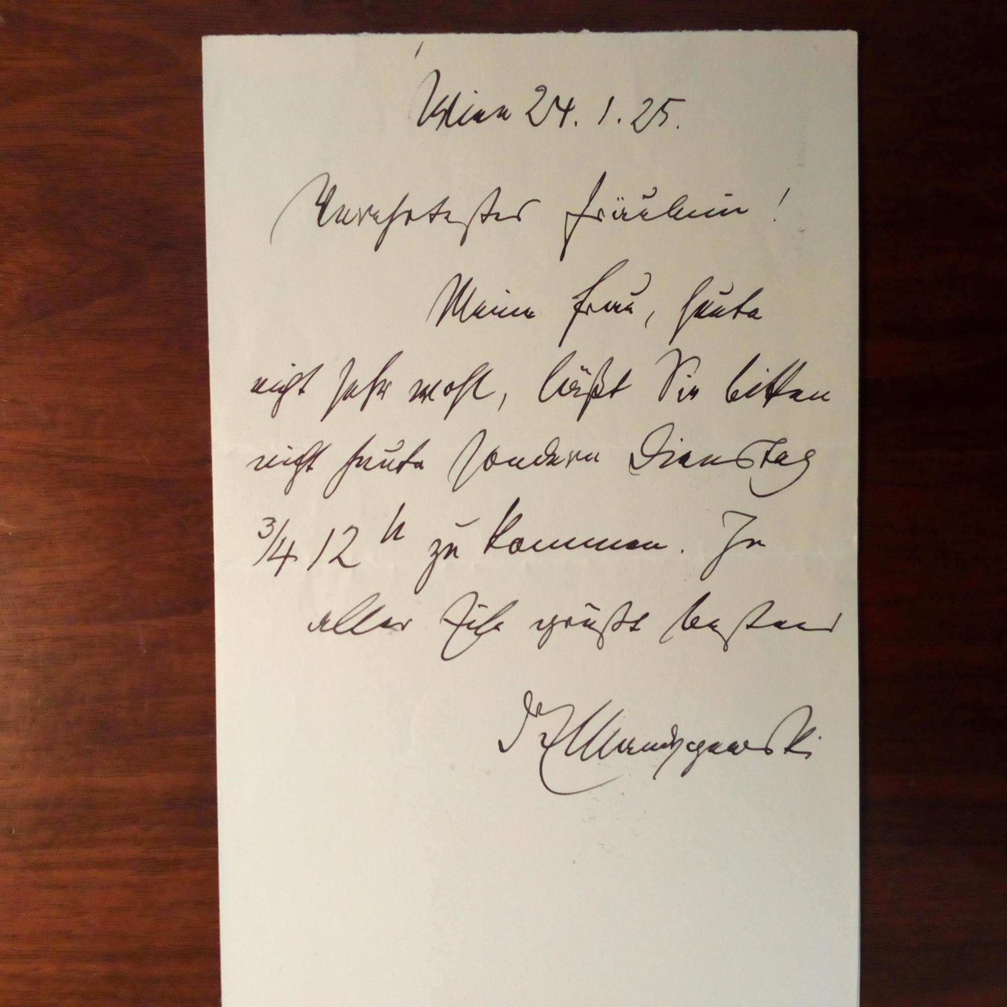1857-1929, Chorleiter und Komponist, Freund von Brahms - E. Brief mit U., Wien 24.1.1925, 1 S. 8°. An eine Dame: Terminänderung: ...meine Frau, heute nicht sehr wohl, lässt bitten...