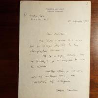 1882-1973, frz. Philosoph - E. Br. m. U., 1 S. gr. 8°, Br.kopf der Princeton University, 21.11.1956. ...Ma femme s'excuse de n'avoir pas pu envoyer plus tôt les deux photographies demandées...