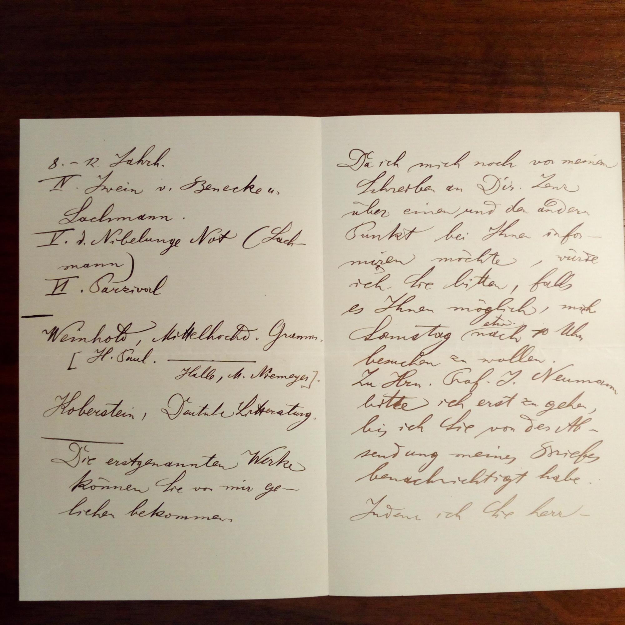 1855-1932, österr. Komponist und Musikwissen-schaftler - E. Br. mit U., Wien 21.3.1889, 3 ½ S. 8°. Gibt einem Freund ausführliche literaturwiss. Empfehlungen: ...was den Anfang der deutschen Studien betrifft, so empfiehlt es sich, im Sinne K. Müllenhoffs (Mediävist) etwa folgenden Stufengang festzuhalten... Erwähnt Prof. J. Neumann.