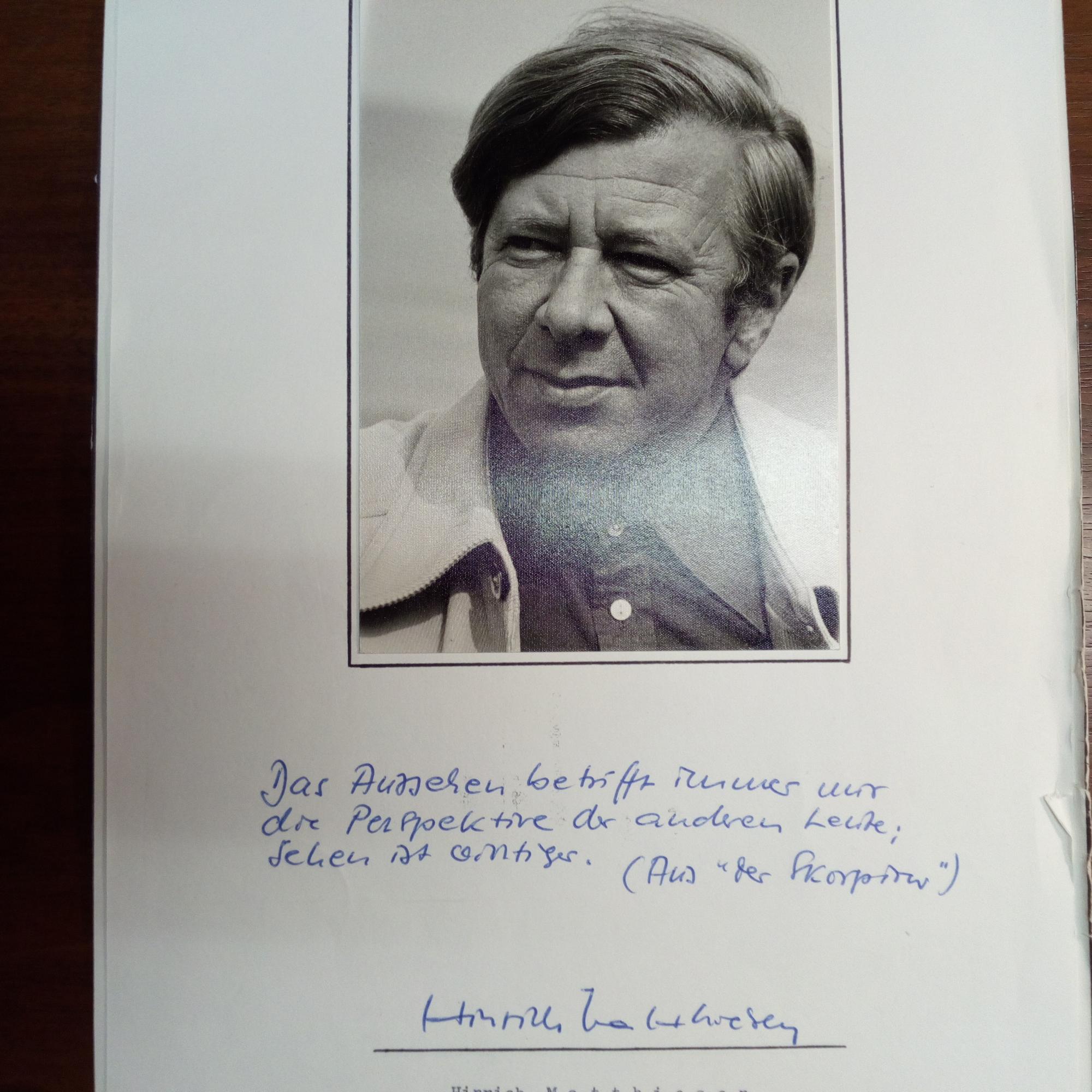 1925-2009, SPD-Pol. - U. unter auf 4° mont. Pfo. m. U. u. gedr. Zitat (aus einer Broschüre). Beiliegen 4 FDC mit U.