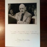 1916-98, FDP-Pol. - älteres Pfo. mit U. Beiliegt Foto (zus. m. Konrad Adenauer, Werbung für sein Buch "Sechs Jahrzehnte erlebte Zeitgeschichte) mit E., U. und D. 3.11.1986.
