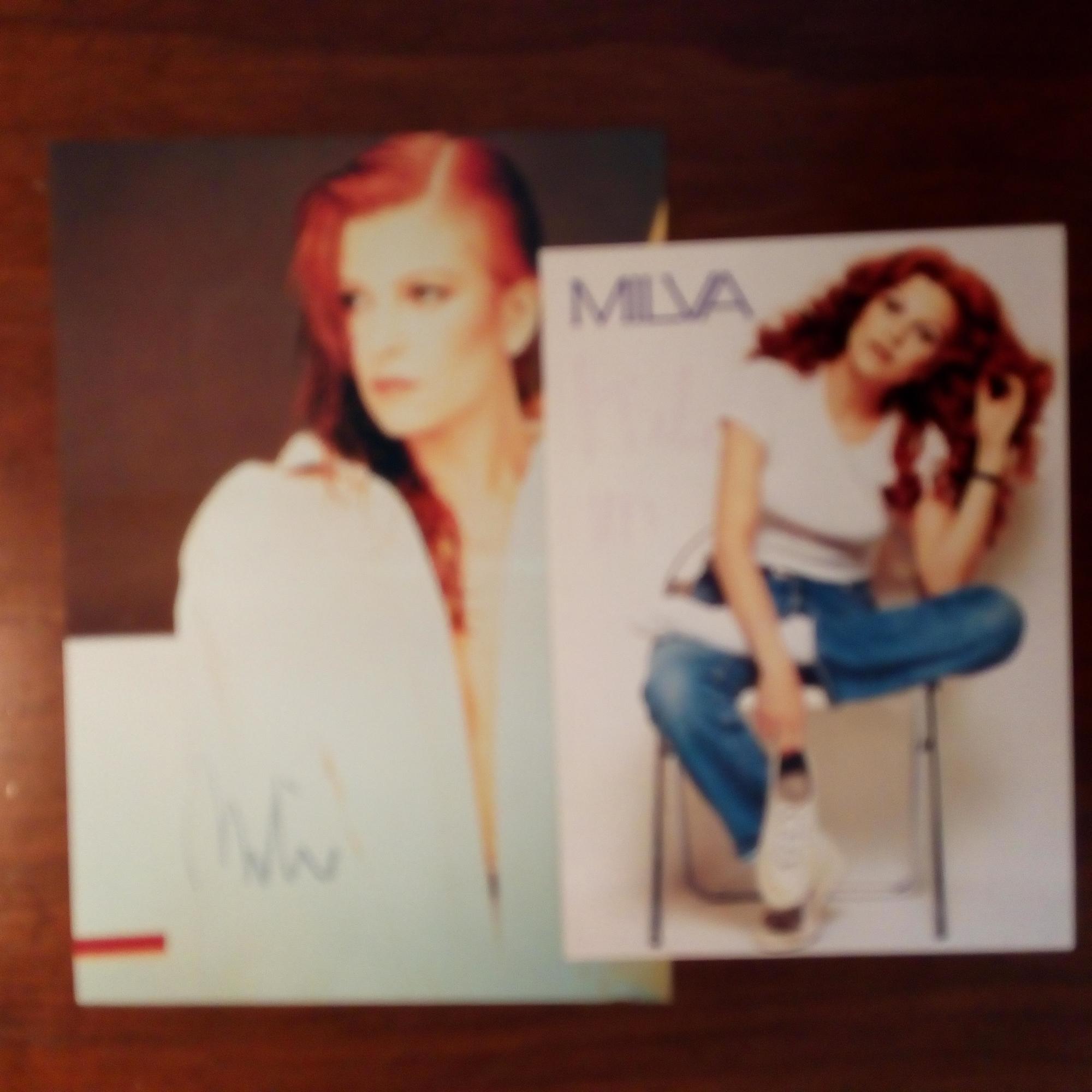 1939-2021, italien. Chanson- und Schlagersängerin, Schauspielerin - Farb-Pfo. (zu ihrer dt. LP "Ich hab' keine Angst" 1981) mit U. und Jahr 1982. Beiliegt Hochglanz-Farb-Pfo., ca. 8° (1.4.1998), mit U.