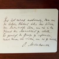 1858-1931, Internist (Diabetes) - kl. 8°quer-Blatt mit e. Zitat und U. "Es ist nicht notwendig, dass wir die letzten Rätsel über das Wesen der Naturkräfte lösen, um sie in den Dienst der Menschheit zu stellen. Es genügt, die Gesetze zu erforschen, nach denen sie wirken, um sie zu meistern...".