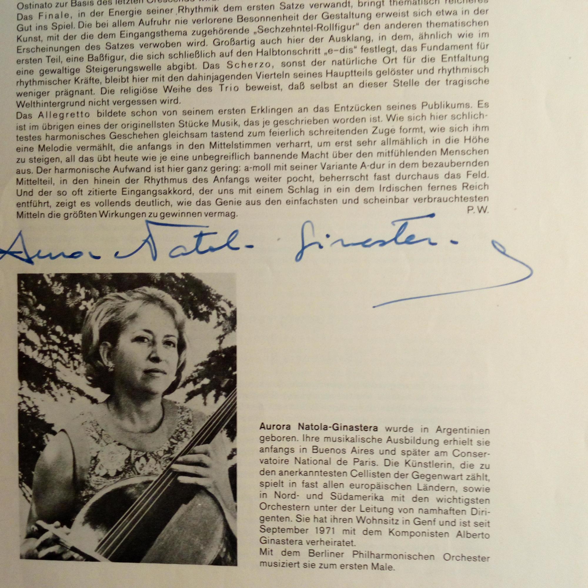 1924-2009, argent. Cellistin, Gattin des Komponisten Alberto G. - Programmblatt eines Abonnementkonzer-tes der Berliner Philharmoniker am 15.3.1973, m. U. bei Pfo.