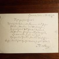 1800-75, Violonist und Komponist - E. Brief mit U., Meiningen 6.10.1855, 4 S. 4°, gering beschäd. Freundschaftlich an den Hofkapellmeister von Sachsen-Coburg-Gotha: Lobt detailliert dessen "Clavierspiel" und Werke, will Mitglied des Mozart-Vereins werden u.a. ...in 3 Wochen werden wir das Glück haben, die Jenny Lind zu hören... Von dieser liegt ein Porträt (nach einem Stich) bei.