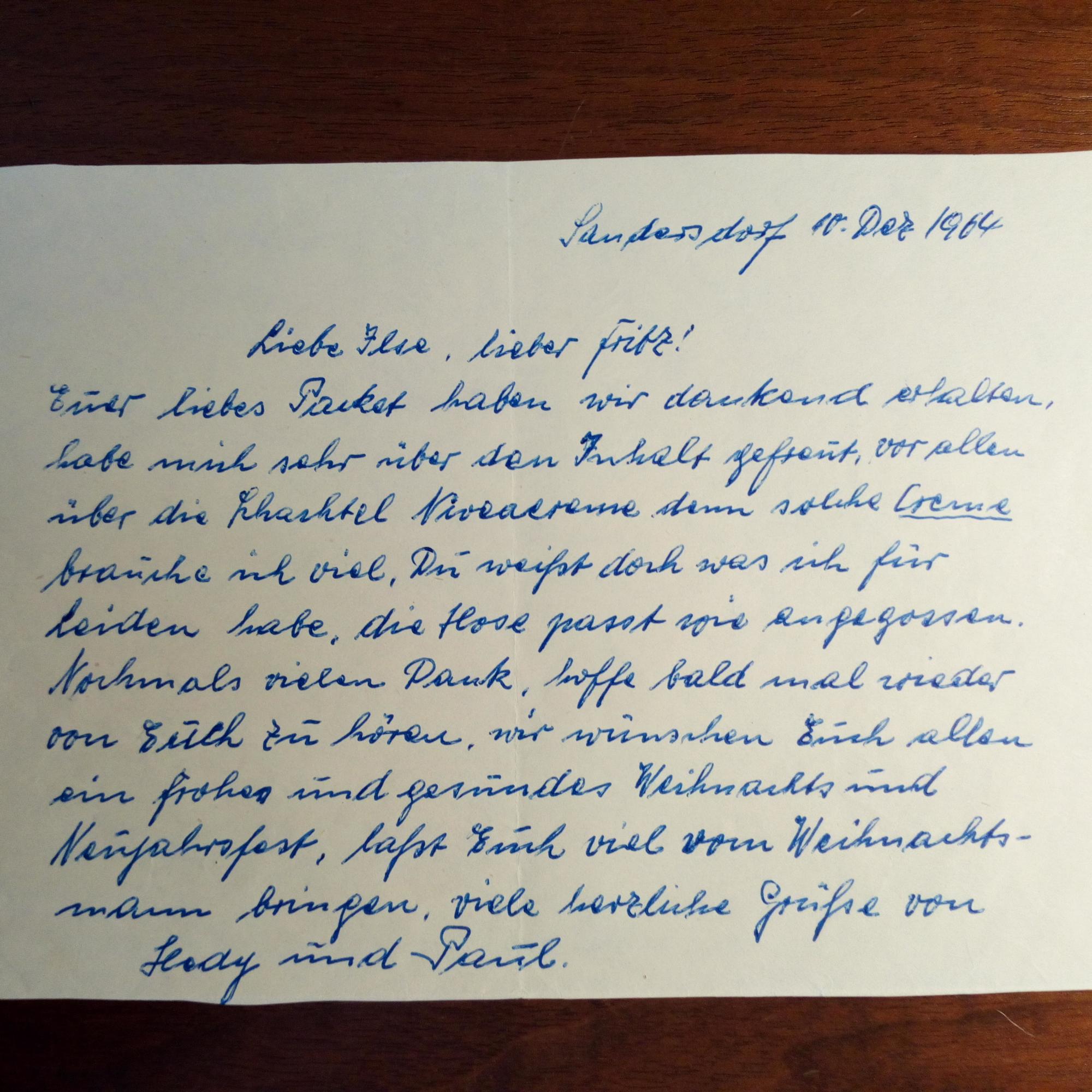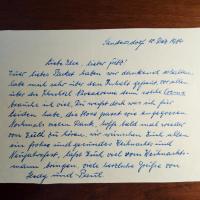 1905-69, Offizier und Widerständler gg. Hitler, für seine Beteiligung am Volksaufstand 1953 lange in DDR-Haft (der "Löwe von Bitterfeld") - E. Brief mit U., Sandersdorf (Sachsen) 10.12.1964 (kurz nach Haftentlassung), 1 S. 8° quer. Bedankt sich bei seinem Bruder Fritz für ein Paket: ...vor allem über die Schachtel Niveacreme denn solche Creme brauche ich viel, Du weißt doch was ich für Leiden habe, die Hose passt wie angegossen... Kopie des Begleitbriefes von diesem an einen Sammler liegt bei.