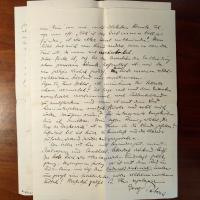 1902-80, Schriftsteller, Schauspieler und Volks-sänger in München - E. Brief mit U., Schlangenbad (Taunus) 3.8.1931, 6 S. 4°. Am Kopf e. Bleistift-Notiz "Bitte heben Sie doch die Blätter auf, vielleicht kann ich sie später als Unterlage gebrauchen". An Elisabeth Jäger (spätere Lenze) in Ammerland (Starnberger See): Betr. einer Geldüberweisung an sie, ausführl. über Probleme mit seiner Gattin, die er nicht liebe und nur weg. der Schwangerschaft geheiratet habe, seine neue Heimat, in der er sich nicht wohl fühle, und seinen Abfall vom Katholizismus. Dazu 2 weitere an dieselbe: von 1937 aus München, 2 S. 4° (mit Br.umschlag mit Stempeln "Hauptstadt der Bewegung" u.ä.) und von 1943, mit postal. Feldpost-Umschlag, 2 S. 8°: ...Nehmen Sie mir meine...magere Berichterstattung nicht übel, aber wir erwarten wieder einen Luftangriff... Beiliegen: 3 Pfo. mit U.: eines mit D. 4.1.1930, eines mit e. Zeilen auf Rückseite, Landshut 4.2.1930, eines lt. e. Beschriftung als "Fürst Thuiskomar in Kleists 'Hermannsschlacht'", Nordhausen Okt. 1933. Alles mit leichten Gebr.spuren. Dazu: e. Brief mit U. seines Vaters Sepp Peters (2 S. 4°, dicht geschr.) an vorige, 1936, betr. der privaten Verwicklungen und undankbaren Verhaltens seines Sohnes dabei.