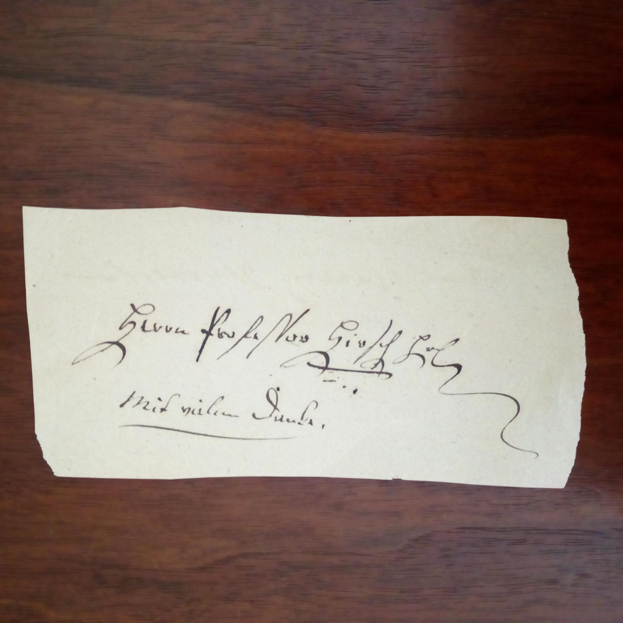 1781-1873, Historiker, Verw.beamter und Politiker - Zettel mit e. "...Herrn Professor...mit vielem Dank..." (ohne U.)