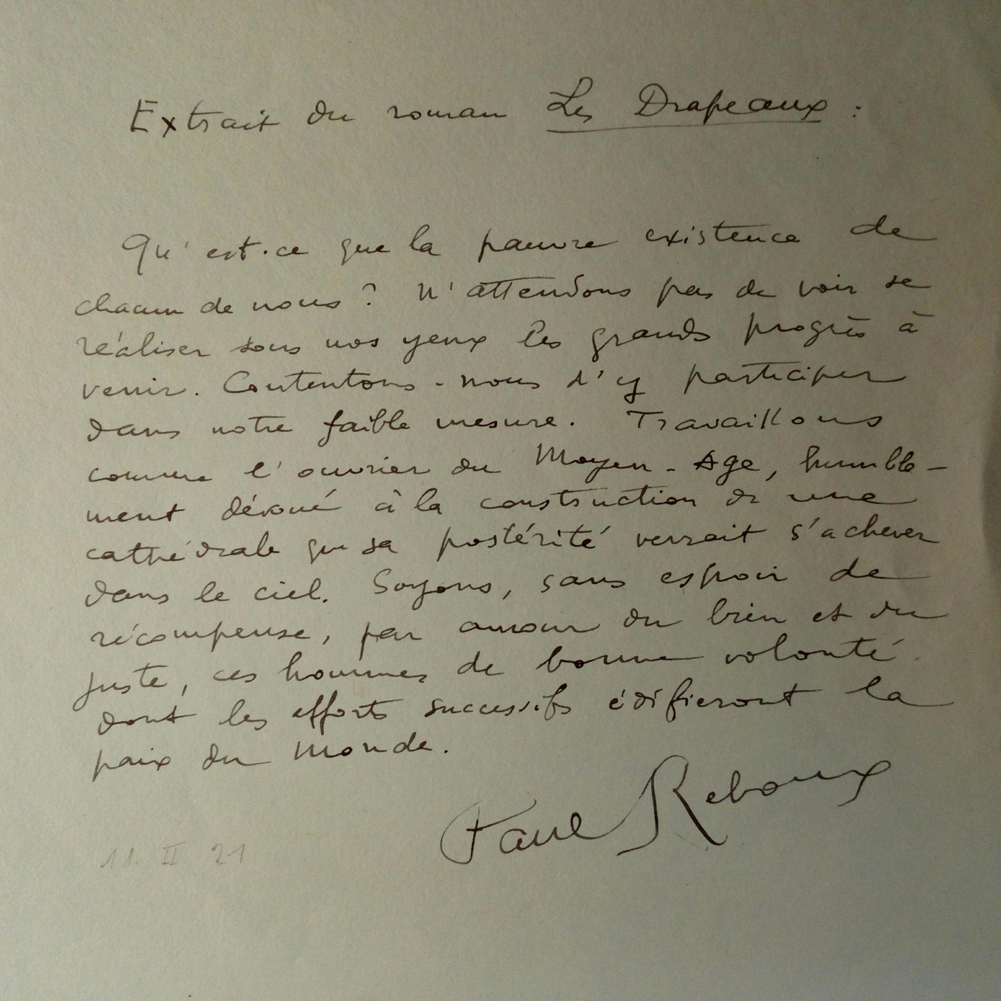 1877-1963, frz. Schriftsteller - E. Manuskript ("Extrait du roman Les Drapeaux"), m. U., 1 S. folio.