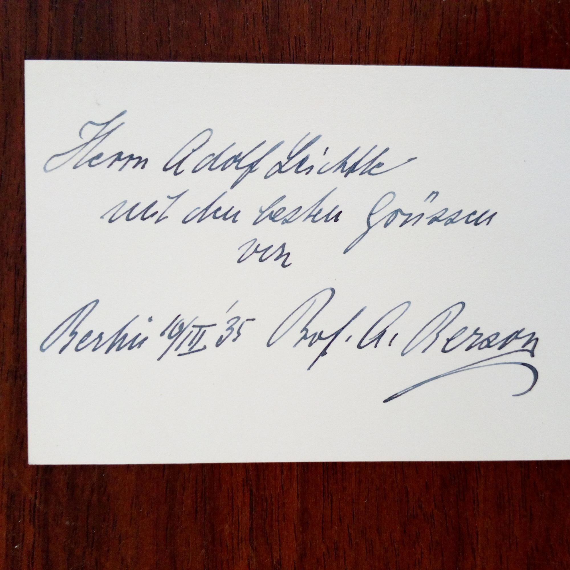 1859-1943, Meteorologe und Ballon-Pionier (u.a. Mitarbeiter von Piccard) - Kärtchen mit Widm. (für Adolf Leichtle) und U., Berlin 10.3.1935. Mit Sammlerblatt.