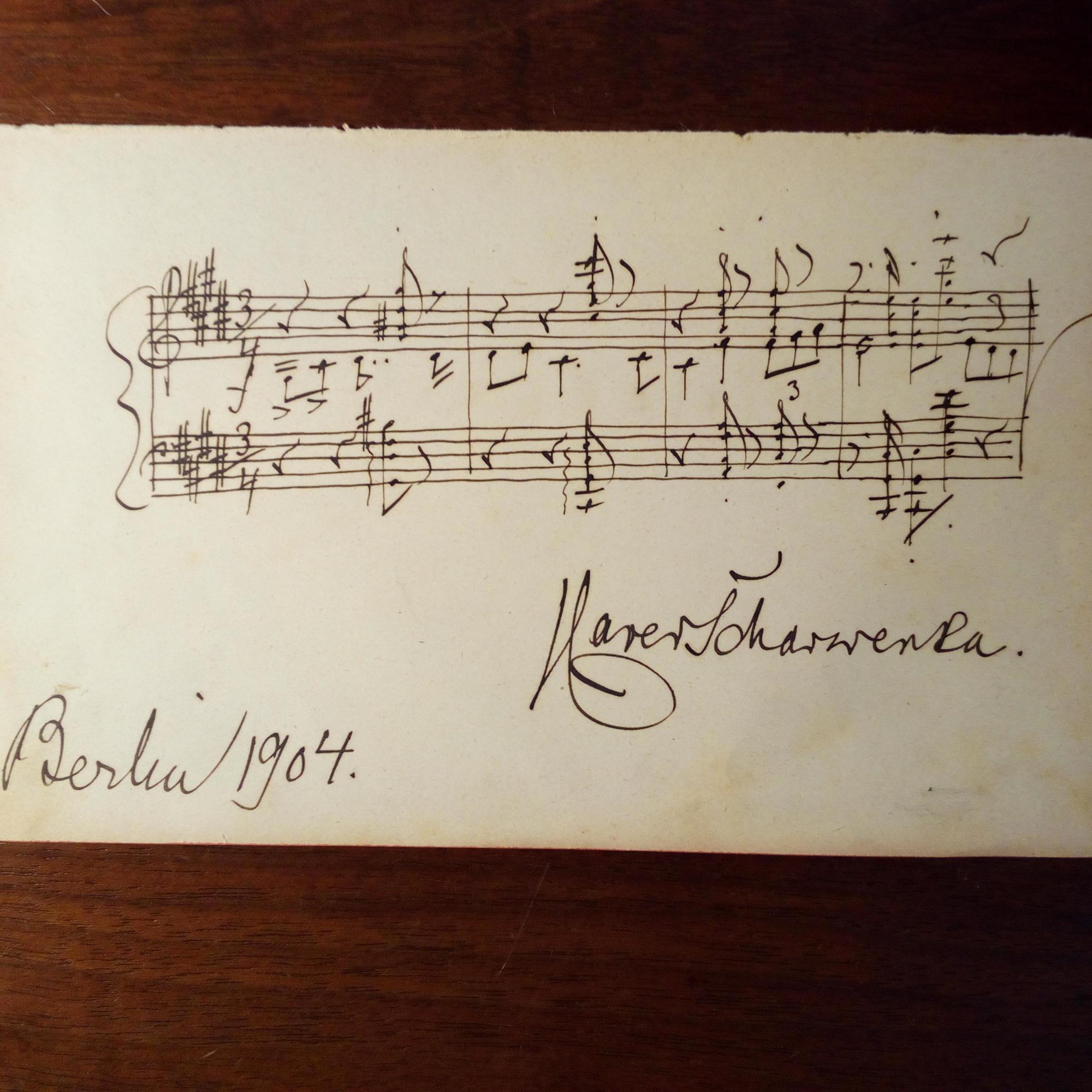 1847-1917, Komponist und Musikpädagoge, Bruder von Xaver Sch. - E. postal. Postkarte mit U., (Berlin) 3.1.1888. Bittet Herrn Saylor zur Kostüm-Anprobe zu sich. Beiliegen: Schönes Blatt, ca. 8°quer, mit e. Notenzeile, E. und U., etw. stockfleckig. "Erinnern Sie sich noch, gnädige Frau, der oben notierten Töne und Ihres..." und Druck-Pfo..