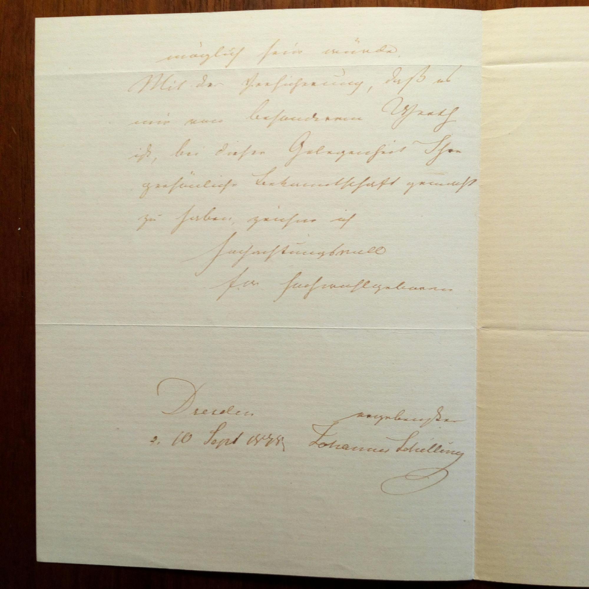 1828-1910, Bildhauer - E. Brief mit U., Dresden 10.9.1878, 2 S. 8°. Muss die Herausgabe von Gipsabgüssen "der in Wachs stehenden Medaillons" leider ablehnen.