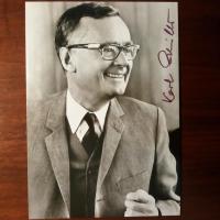 1911-95, Politiker (SPD), Wirtschafts- und Finanz-minister - E. Zitat und U. unter auf 4° mont. Pfo. mit U., montiert auf 4°. "Inflation ist wie Rauschgift!". Beiliegt dasselbe Pfo. mit Faksimile-U.