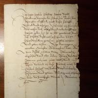 1502-97, Franziskaner, letzter Verweser des Konvents in Erfurt - E. (?) Schreiben "Copeij einer quitung" ohne U., 20.11.1587. Stärkere Altersspuren. Bestätigt den Empfang einer Pension der Stadt.