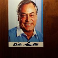 1921-95, Schauspieler und Synchronsprecher - Brief mit U., (Hamburg 22.6.1984, 1 S. 4°, Br.kopf als Diektor des von ihm mitbegr. Ernst-Deutsch-Theaters. An den Kultur-Journalisten Axel Michael Sallowsky (1938-2006) in Hamburg.: ...fliege am Mittwoch um 14,30 nach Berlin und am gleichen Abend um 20,35 wieder zurück...würde ich mich freuen, wenn wir gemeinsam diesen "Luftsprung" machen... Beiliegen: Begleitbrief zur Abschrift eines Empfehlungsbriefes an den Bürgermeister von Hof (Saale), der einen Intendanten für das dortige "Städtebundtheater" sucht mit U. (auch 22.6.) 2 S. 4°, gel., auch mit U. Und ähnl., 1 ½ S., 23.11.1981, an die Redaktion von "Die Welt", in dem er die Gründung eines Theater-Stammtisches anregt.