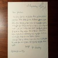 1892-1949, Kunsthistoriker - E. Brief mit U., München 26.2.1941, 1 S. 4°. An "Medizinalrat": Dankt für "Zusendung der Vortragsbespechungen": ...Was für stumpfe Böcke gestalten heut unsere "öffentliche Meinung"... Beiliegt eine Vortragsankündigung (aus Zeitschrift).