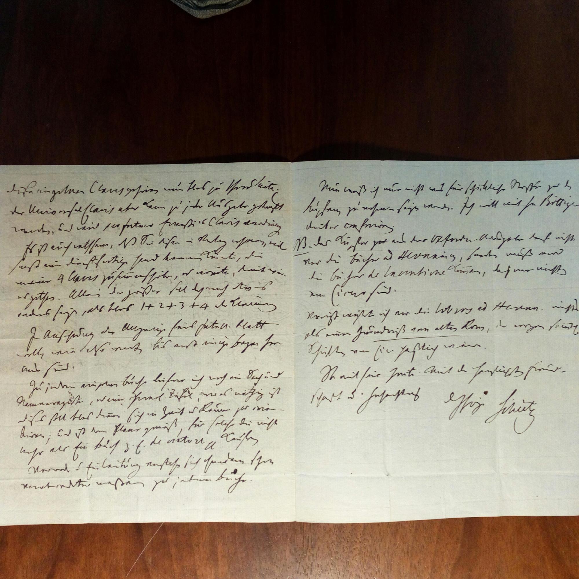 1747-1832, Philologe und Philosoph, Gründer der "Allg. Literaturzeitung" - E. Brief mit U., Jena 3.2.1803, 2 ¾ S. kl. 4°. An seinen Verleger Georg Joachim Göschen (1752-1828) in Leipzig: ...will wohl das Exemplar der Prachtausgabe des N.L. von Ihrer Güte als Geschenk annehmen, aber nur unter der ausdrücklichen Bedingung daß ich doch auf Einen wirklich pränumerire... Es folgen Gedanken zur Ausstattung: ...Nun weiß ich nur nicht was für schickliche Stoffe zu den Kupfern zu nehmen sein werden. Ich will mit Böttiger (Karl August, 1760-1835, Philologe, Archäologe, Museumsdir. in Weimar, später Dresden) darüber conferiren... Schlägt einen "Grundriß vom alten Rom, der wegen sämmtl. Schriften von Cicero paßlich wäre", vor.