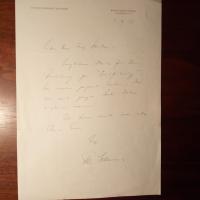 1905-90, Schauspieler, Regisseur und Theaterleiter - E. Brief mit U., Berlin 5.3.1962 (als Gen.intendant der Dt. Oper), 1 S. 4°, priv. Briefkopf, kl. Gebr.spuren. ...herzlichen Dank für Ihre Zusicherung zur "Entführung"... Beiliegt ähnl. Brief mit U., 12.5.1976. An die Psychologin Dietmut Bergmann in Lübeck Dankt für deren Brief. ...kam mitten in die erregendste Zeit der Trachisproben hinein...Als Ausstattung gab es nur den griechischen Sand in marmorner Weisse, die Kostüme waren improvisiert...