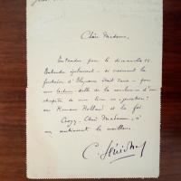 1886-1939, frz. Germanist und Literaturkritiker - Schöner e. Faltbrief mit U., 1 S. kl. 8°. Mit e. Adr. an die Übersetzerin Louise Guieysse-Bréal (1872-1954) in Paris. Nimmt Einladung an und sendet ein "chapitre de mon livre en "gestation": sur Romain Rolland et la foi...".