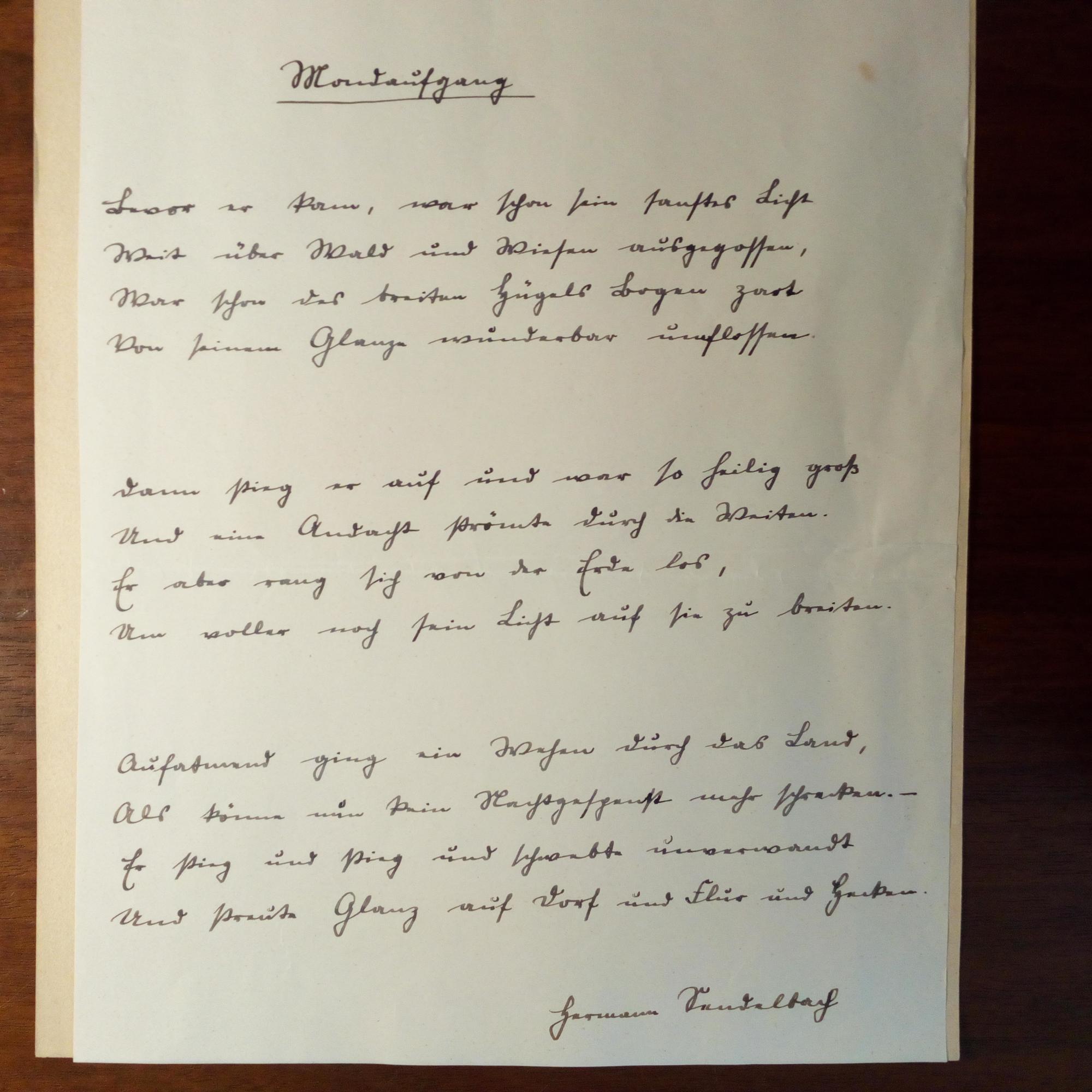 1894-1971, fränk. Dichter - 4°-Blatt mit e. Gedicht ("Mondaufgang", 3 Str. à 4 lange Z.) mit U., hinterlegt.