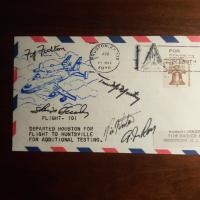 Postal. Umschlag vom "Flight 101" der US-Raumfähre "Space Shuttle" von Houston nach Huntsville am 23.3.1978 m. U. der Besatzung: Fitz Fulton, Tom McMurtry, Skip Guidry, Vic Horton und A.J. Roy.