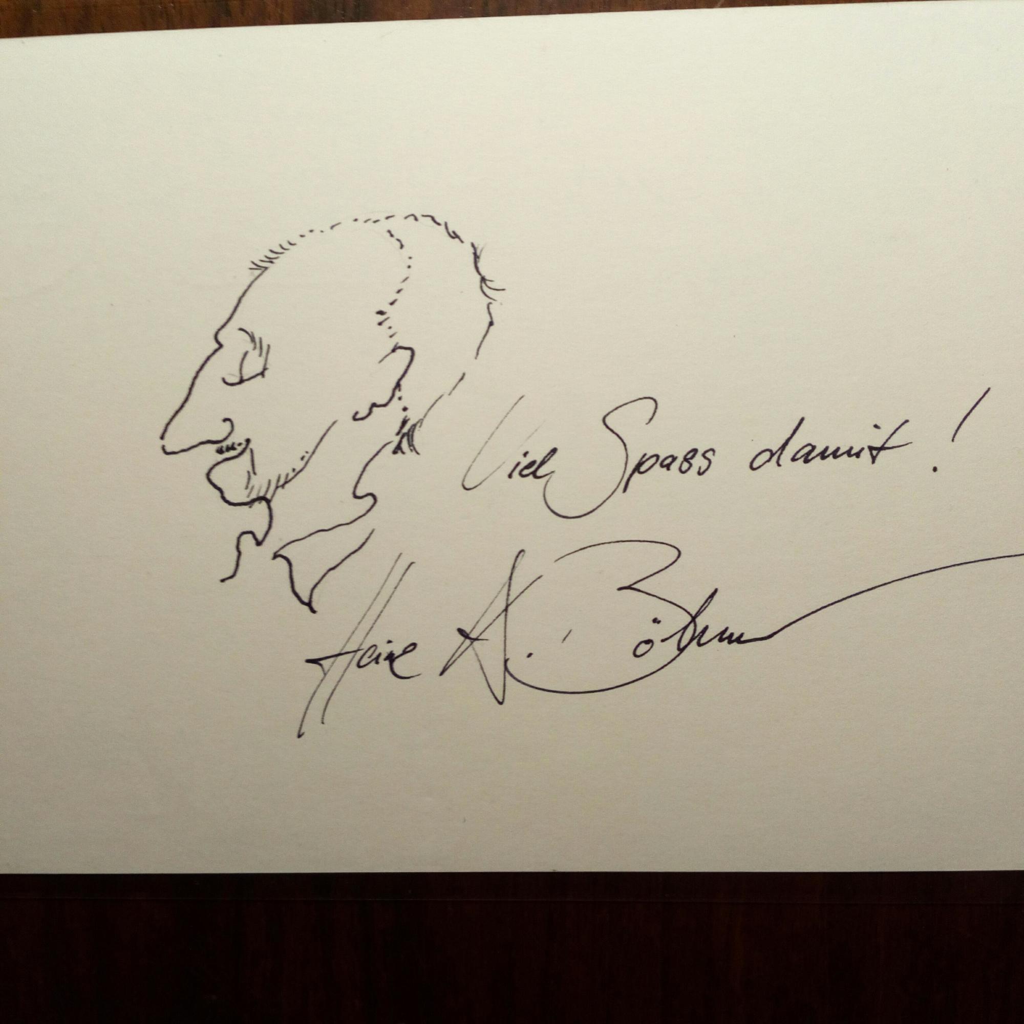 1947-2020, Maler, Graphiker, Karikaturist - E. kl. Selbstporträt-Zeichnung (Karikatur) mit e. "Viel Spass damit!", und U., als e. postal. Ansichtskarte (weitere U. im Abs.). (2007).