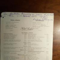 1902-84, luxemburg. Politiker, verhalf im 2. Weltkrieg vielen Juden zur Flucht - Speisekarte des Hotels "Sacher" in Wien vom 13.10.1952 m. ausführl. E. u. U. am Kopf, kl. Gebr.spuren. Beiliegt kl. Zeitungsartikel vom selben Tag (österr.-luxemb. Luftverkehrsabkommen).