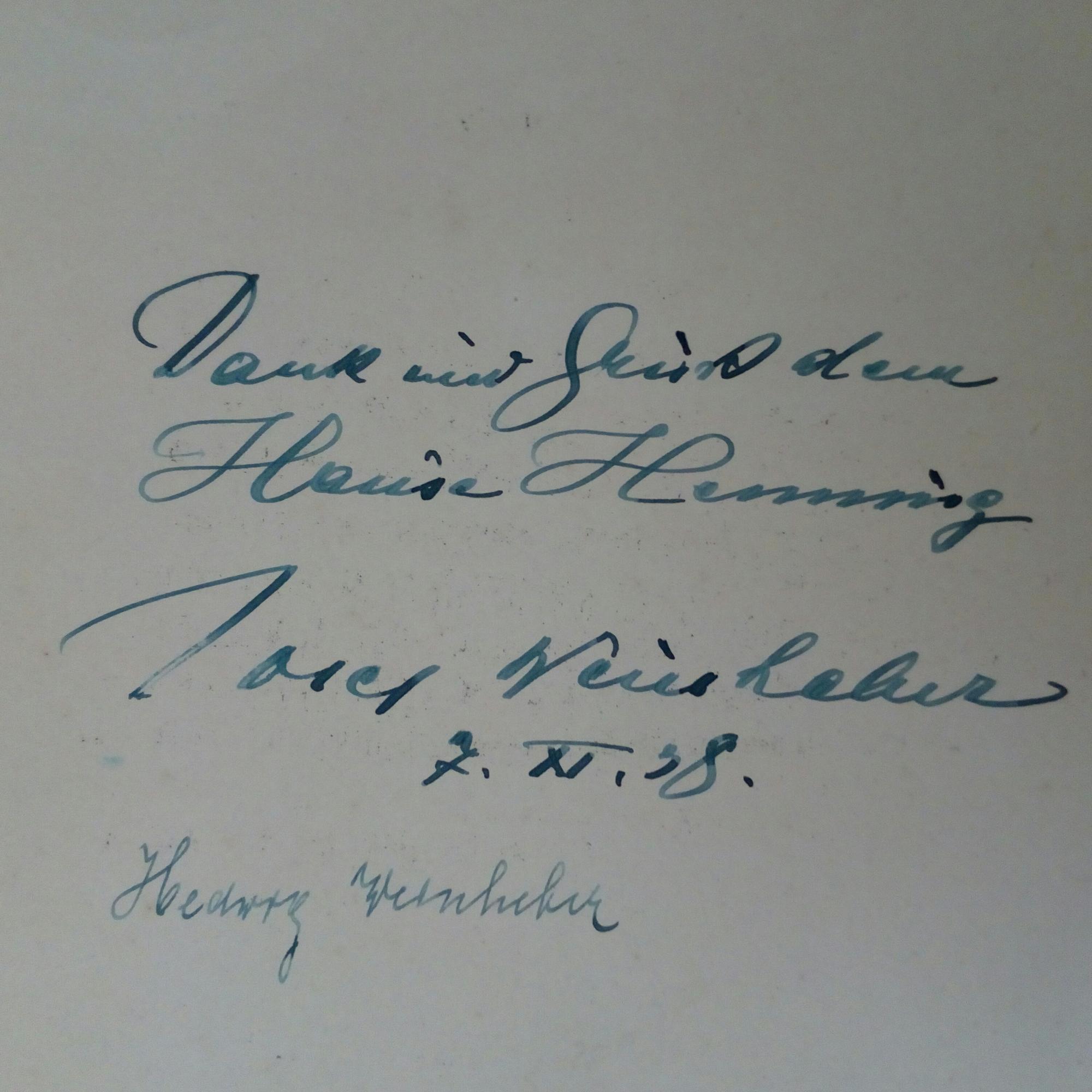 1892-1945 (Suizid), österr. Schriftsteller - kl.4°-Blatt mit e. Widm. (für das "Haus Henning"), 7.11.1938. Darunter U. seiner Gattin und späteren Nachlass-Verwalterin Hedwig W. (1885-1958).