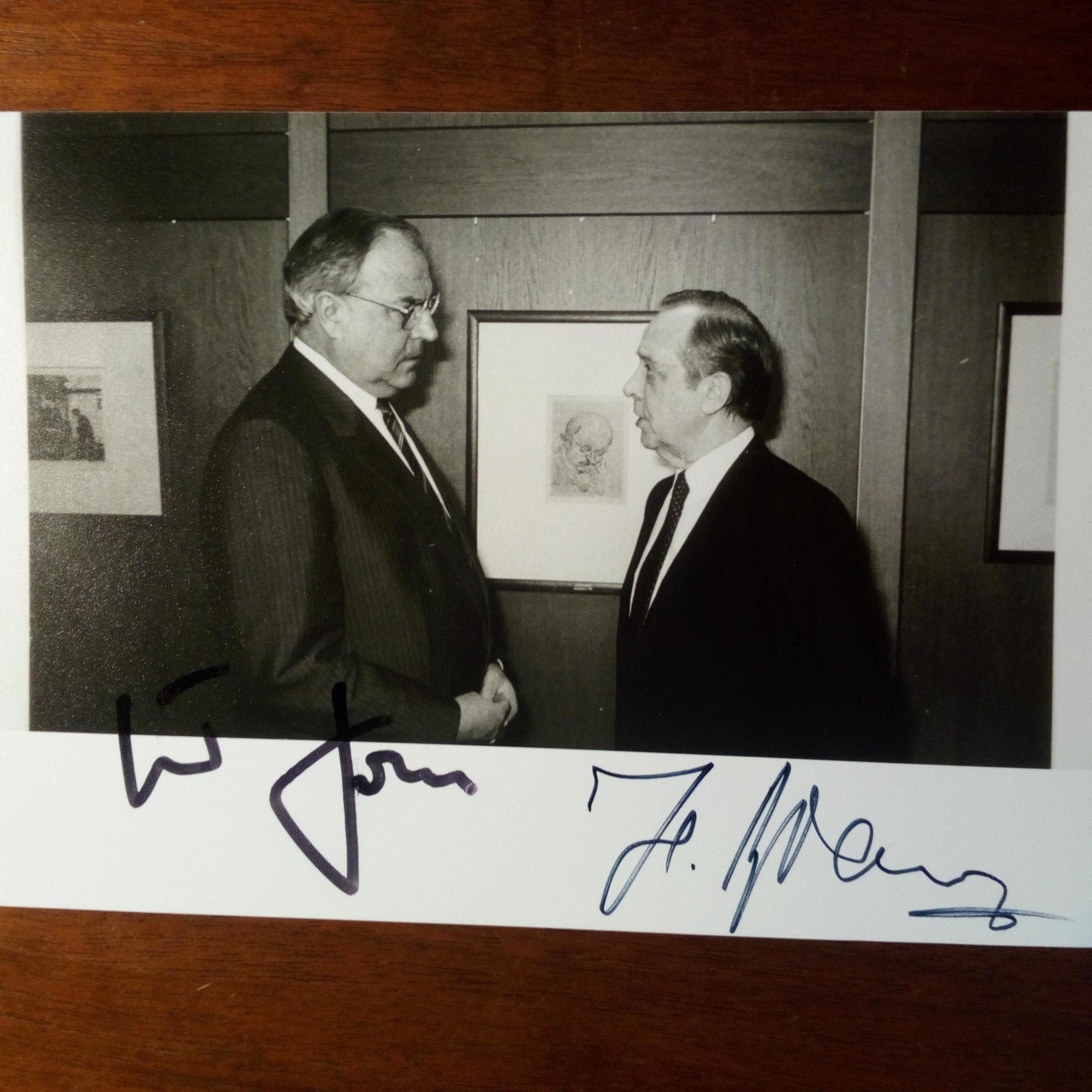 1922-2018, Vorsitzender der Dt. Angestellten-Gewerkschaft - Foto (ca. 8°quer, zus. mit Bundeskanzler Helmut Kohl), U. von beiden. Dazu FDC mit U., mit Begleitbrief, auch mit U., (Hamburg) 10.11.1983, Briefkopf der DAG.