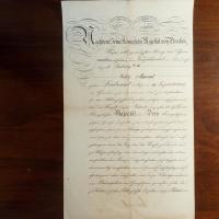 1859-1941, Kaiser - Urkunde mit U., Kiel 26.6.1912. gegenzeichn. von Justizminister Max von Beseler (1841-1921), 1 S. folio, gepr. Siegel. Ernennung von Albert Schmidt in Duderstadt zum Justizrat. Mit Begleitschreiben mit U. des Sekretariats, mit postal. Umschlag.